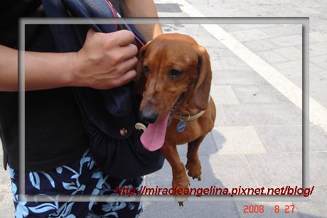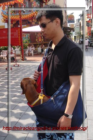 先把話題拉回來一下,Miracle在小時候很小一隻,我根本沒有想過牠會長多大,突然有一天發現小香腸變成大肥腸的時候才趕快上網查資料,才發現原來Miracle這樣的短毛臘腸屬於中型犬,Miracle的體重算正常一直維持在8-9公斤中間,長度也算正常不含尾巴大約在65-70公分,這些都很健康,可是外出帶就超級難找的!