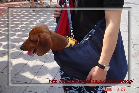 (下圖)話說只要是開始養狗一定會認是一些狗媽媽或是狗爸爸,國內養臘腸狗的人士不少就讓我發現一家熱愛臘腸狗到經營狗狗用品的DOCKY(http://docky.pixnet.net/blog/),其實我只是常常看他家的文章根本談不上認識,倒是九隻臘腸狗的Docky家每天都有新鮮事!從他家到日本買臘腸狗專程運回台灣開始看到出現這個狗狗背帶